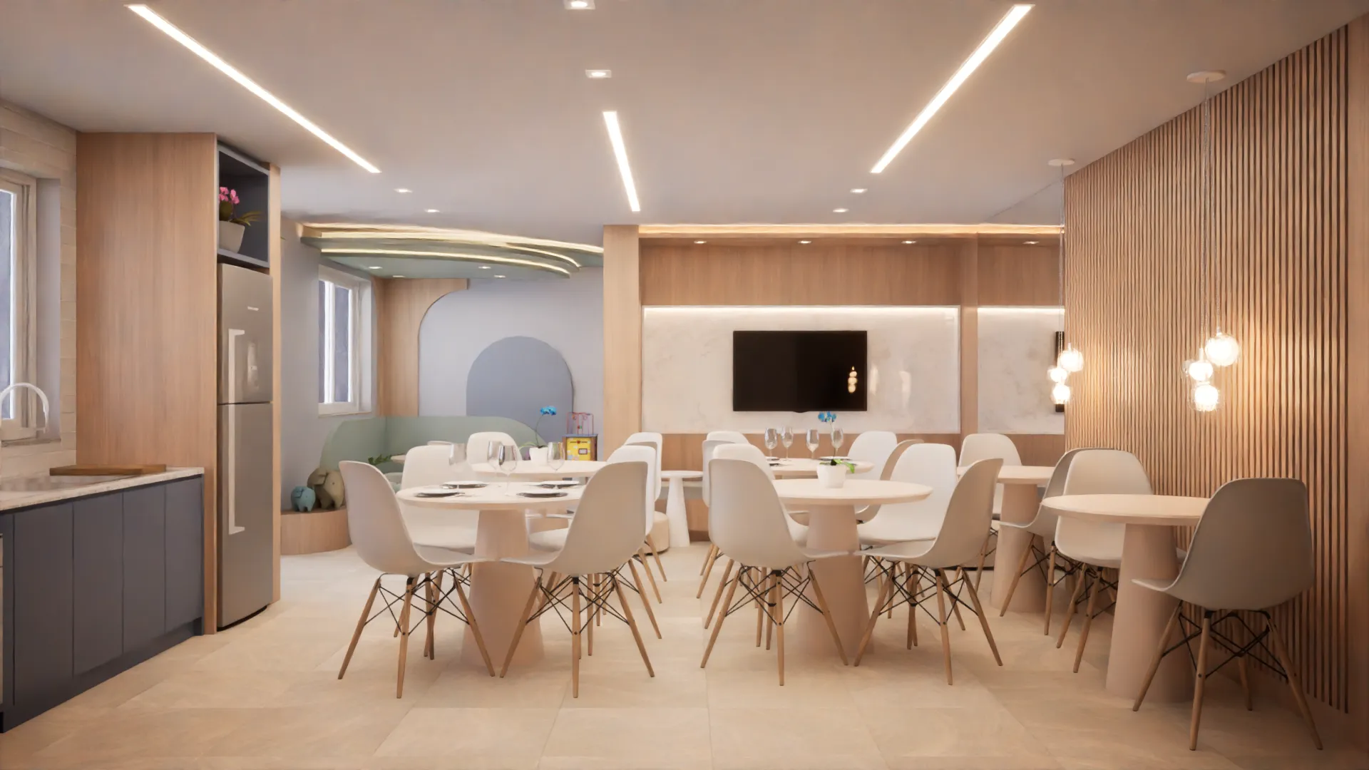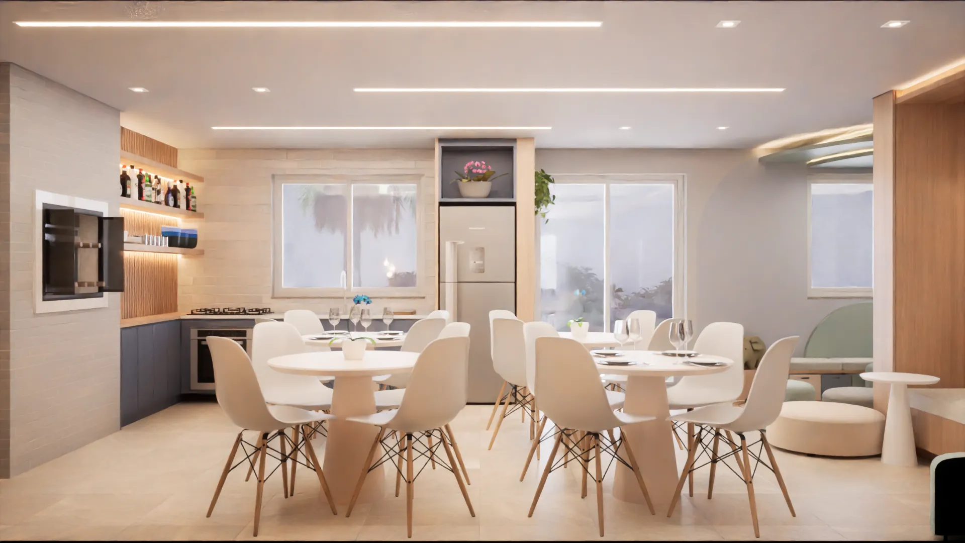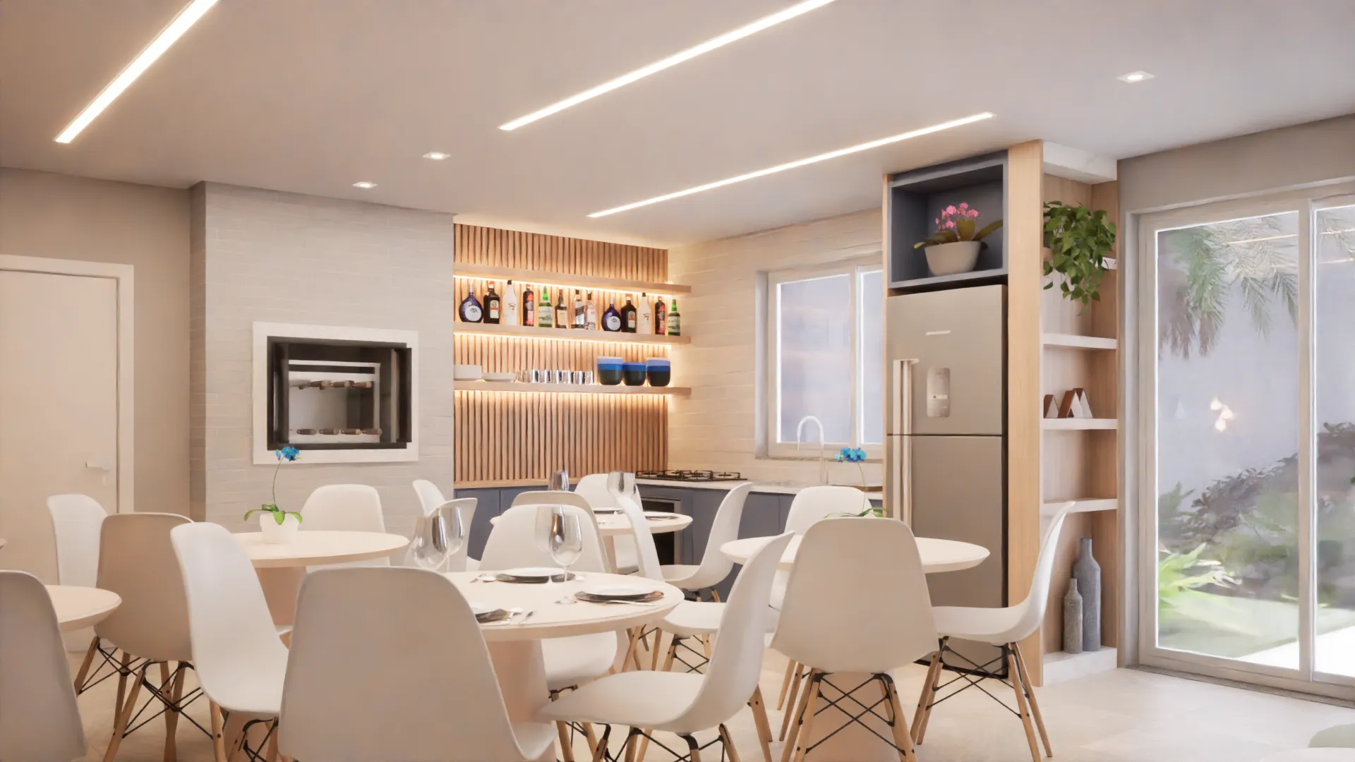 O espaço perfeito para tornar você o melhor anfitrião que seus convidados já viram. Espaço para festas moderno conta com cozinha auxiliar completa e bem equipada.